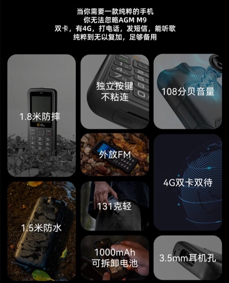 Компания AGM Mobile представила в Китае свой новый защищенный кнопочный телефон под названием AGM M9.